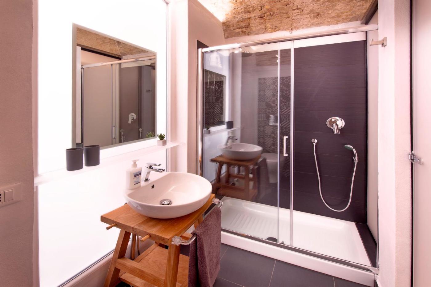 Camera Matrimoniale Piccola. Camera matrimoniale dotata di ingresso indipendente, aria condizionata e bagno privato con doccia e asciugacapelli. Inoltre dispone di pareti insonorizzate, TV a schermo piatto, vista sul cortile interno e cioccolato in omaggio. L’alloggio presenta 1 letto.