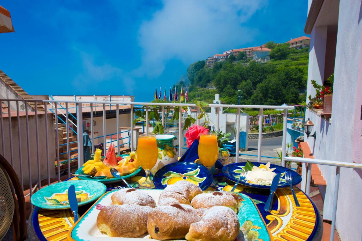 Camera Quadrupla con Balcone. The pool with a view is the standout feature of this quadruple room. The quadruple room features air conditioning, a private entrance, a terrace with sea views as well as a private bathroom boasting a shower. The unit has 3 beds.