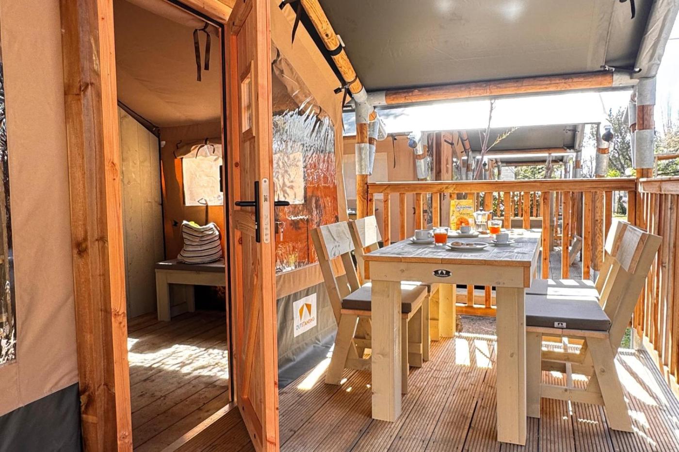 Tenda Safari. Guests can make meals in the fully equipped kitchenette that features a stovetop, a refrigerator and kitchenware. This tent has a shared bathroom, a private entrance, a seating area as well as a patio. The unit has 3 beds.