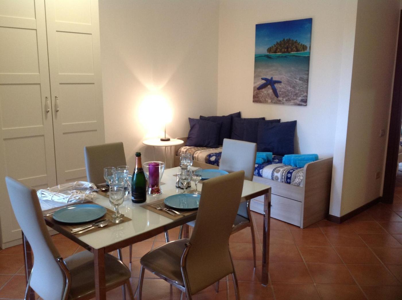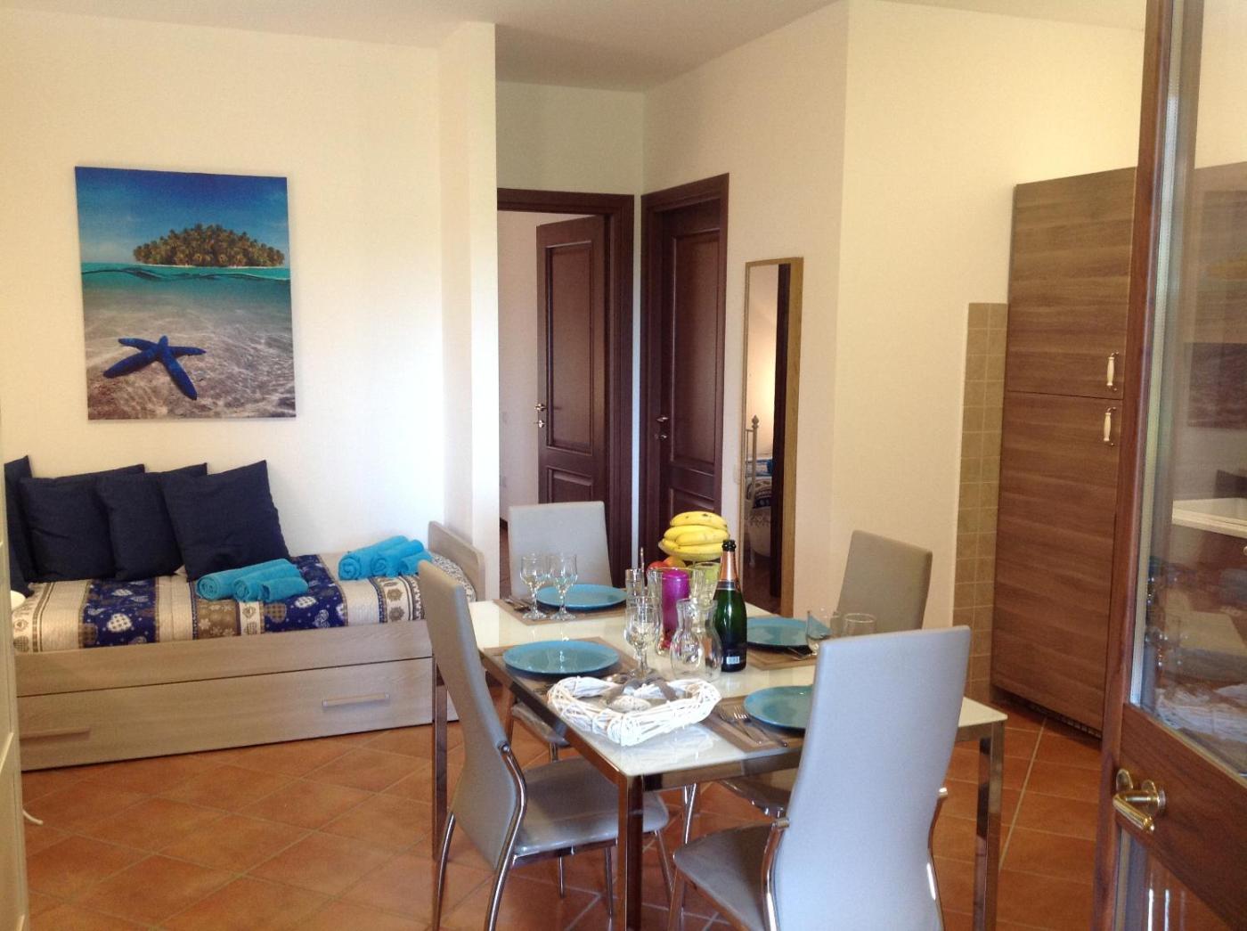 Gli appartamenti del Perla dispongono di aria condizionata, cucina completamente attrezzata e zona pranzo allaperto.
