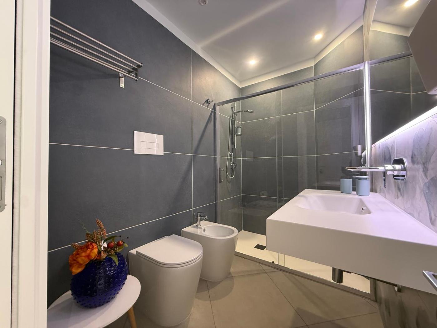 Camera Deluxe. Offering free toiletries, this double room includes a private bathroom with a bath, a shower and a bidet. The air-conditioned double room offers a flat-screen TV with streaming services, a private entrance, soundproof walls, a tea and coffee maker as well as city views. The unit has 1 bed.