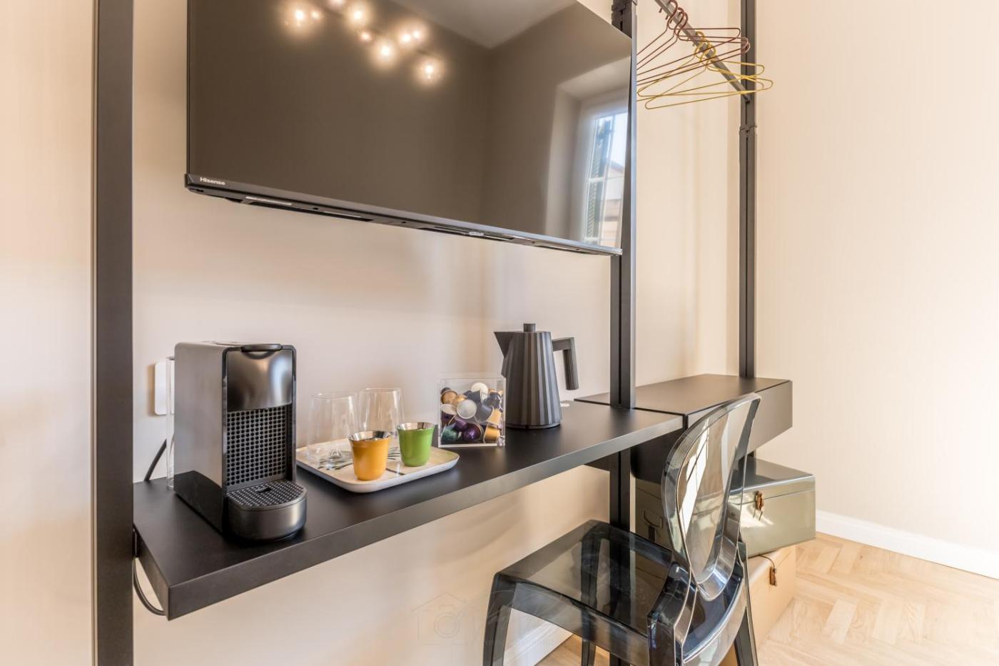 Camera Matrimoniale Standard. Offering free toiletries and bathrobes, this double room includes a private bathroom with a shower, a bidet and a hairdryer. The double rooms kitchen, which has a refrigerator, is available for cooking and storing food. The air-conditioned double room offers a flat-screen TV with streaming services, soundproof walls, a tea and coffee maker, a wardrobe as well as city views. The unit has 1 bed.